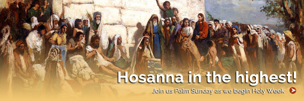 "The very large crowd spread their cloaks on the road, while others cut branches from the trees and strewed them on the road. The crowds preceding (Jesus) and those following kept crying out and saying: 'Hosanna to the Son of David; blessed is he who comes in the name of the Lord; hosanna in the highest.'" (Matthew 21:1-11) This Scripture describes Jesus' triumphant entry into Jerusalem, an event we reenact on Palm Sunday, which is celebrated the Sunday before Easter marking the beginning of Holy Week. The Catholic Church remembers this event during More
