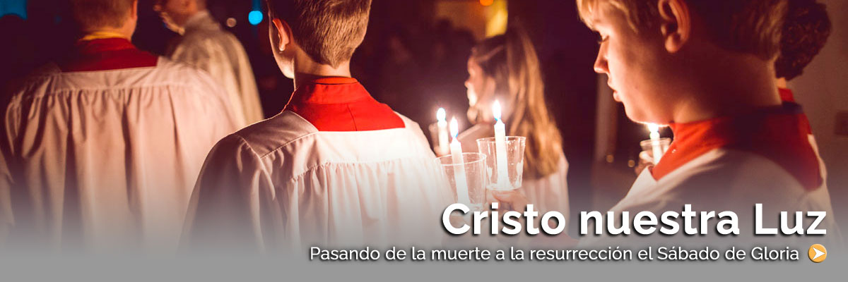 El Sábado de Gloria nos reunimos para la culminación del Triduo Pascual. “En esta noche santa, la Iglesia vela en oración, celebrando la resurrección de Cristo en los sacramentos y esperando su regreso glorioso. Es el punto de inflexión del triduo, la Pascua de la nueva alianza, la cual marca el paso de la muerte a la vida de Cristo”. Conocida como la “madre de todas las vigilias” la Misa de la Vigilia Pascual se realiza después de la puesta del sol y antes del amanecer, por tanto comenzando y terminando en oscuridad. Los temas bíblicos acerca del poder de la luz sobre Más