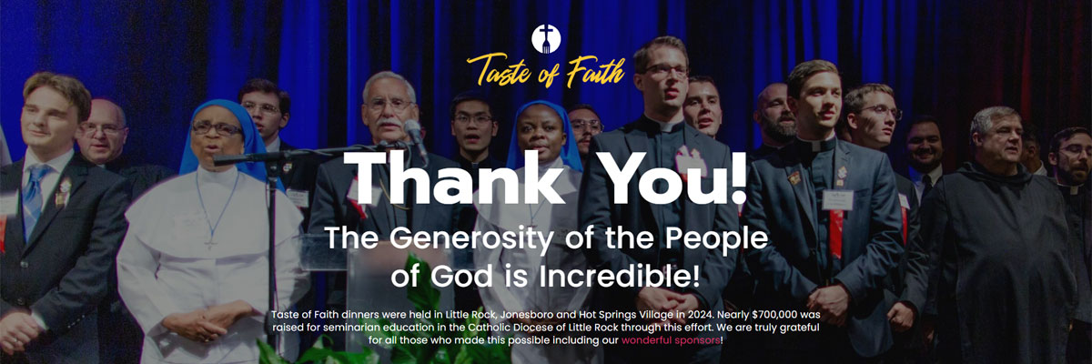 Donations are always welcome online. For more information, visit the Taste of Faith website or contact Deacon Chuck Ashburn, assistant director of development and academic advising for the Vocations and Seminarians Office, at (501) 664-0340, ext. 368.