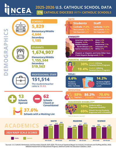 This year, Catholic Schools Week is observed nationwide Jan. 24-30. Catholic schools celebrate the week with special Masses, open houses and other activities for students, families, parishioners and the community. Through these events, schools focus on the value Catholic education provides to young people and its contributions to the Church, communities and the nation.